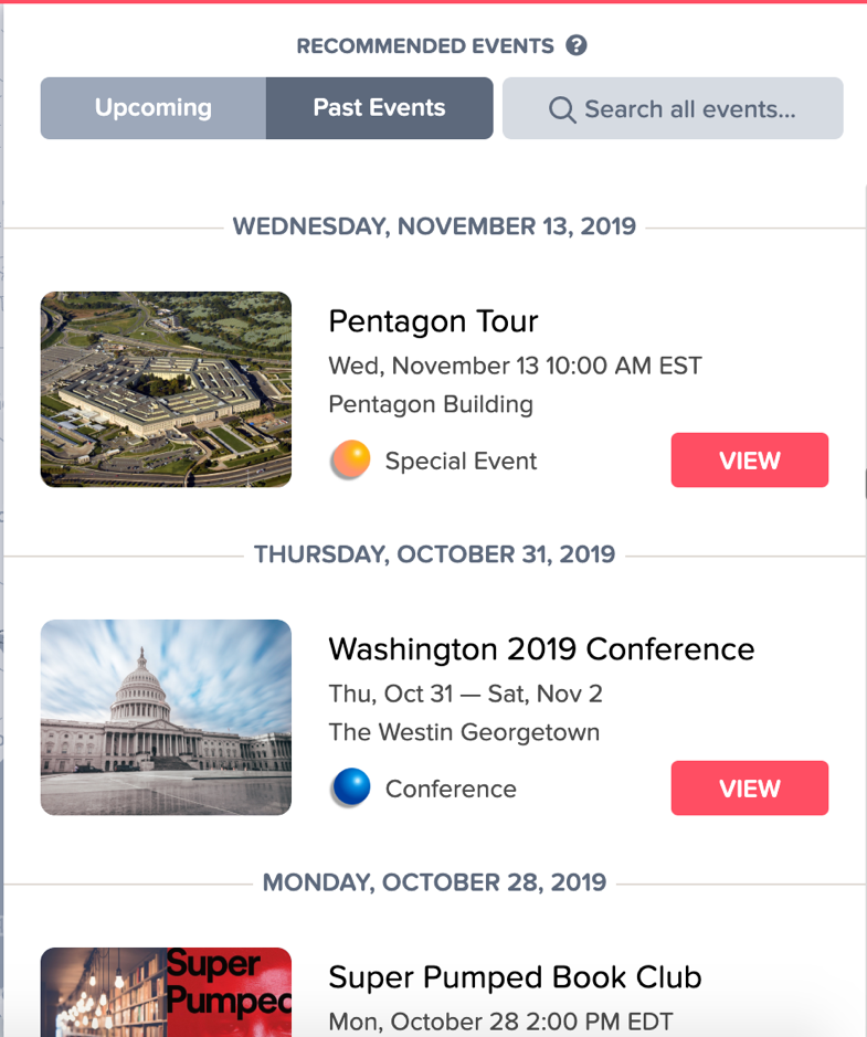 In the Events tab, students can peruse the many community events Quantic has to offer. These range from in-person conferences, meetups, and special events to online orientations and book clubs, where students discuss the monthly book pick over video chat. Some of the most significant networking opportunities in Quantic’s highly engaged network are the in-person meetups and conferences held in cities around the world.