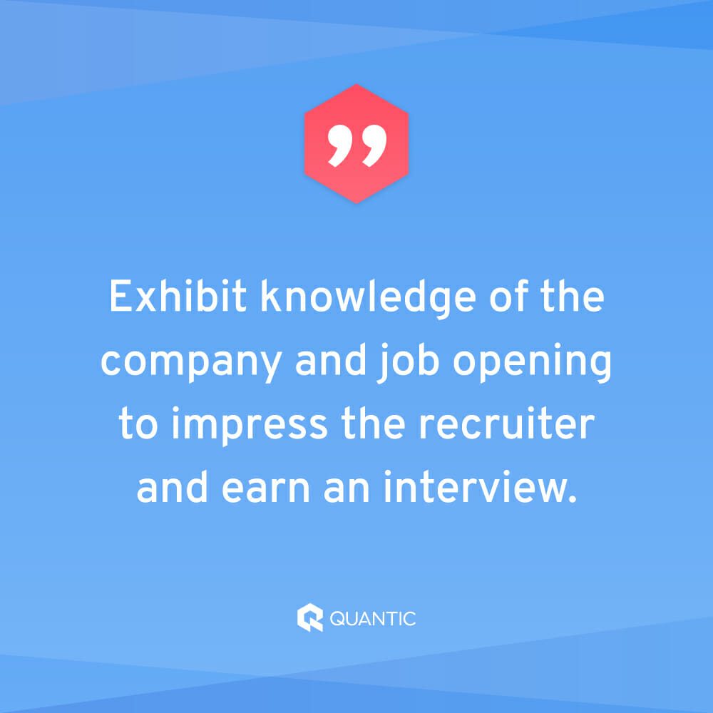 - Exhibit knowledge of the company and position: By researching the employer then tailoring your resume to the employer’s business, you will impress the recruiter and potentially move ahead of other job candidates with more generic resumes.
