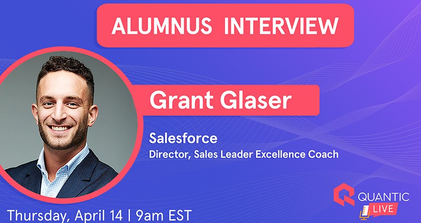 Enjoy our conversation with Quantic Alum, Salesforce Director and Sales Leader Excellence Coach, Grant Glaser! With over a decade of experience in technology & software, Grant has worked in a variety of roles including, Business Development, Solution Engineering, Learning Design, Strategy, Sales Enablement, and Executive Coaching. Currently, Grant works in leadership development as an executive coach helping new …